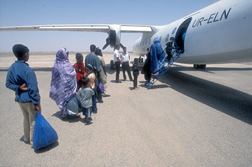 The Antonov aircraft we have used are chartered from MINURSO [United Nations Mission for the Referendum in Western Sahara]. The average number of people carried per flight is 30 [compared to more than 180 on the Boeing 737]. We estimate that about 13,000 out of the 43,000 registered refugees in Tindouf have benefitted.